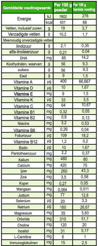 Leeftijd: 6–12 maanden | 400-900 g | Koemelk